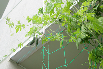 日よけとしてテラスで育てていたゴーヤが、次々に実りました♪収穫のたびに「ゴーヤできたね」と手に取り、生長を喜びあっていたので、スタンプをするときも「これなぁ~んだ?」の問いかけに、「ゴーヤ!」と元気に答えてくれた子どもたち。好きな色で、思い思いにスタンプを楽しんでくれました♪